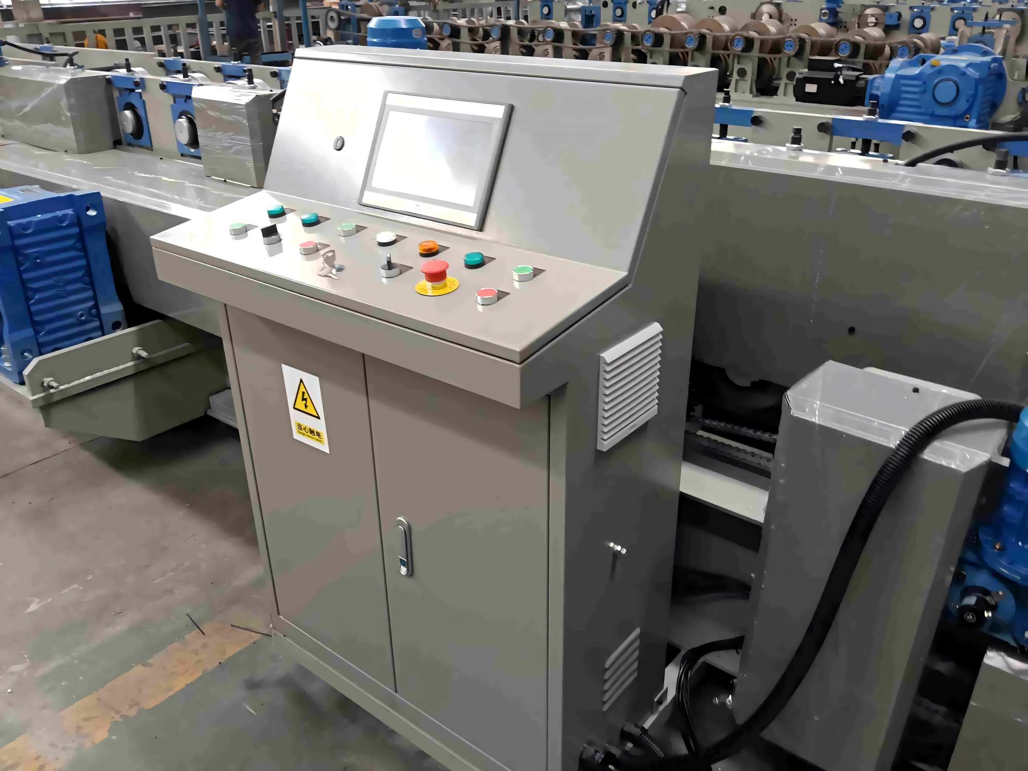 पीएलसी नियंत्रण कैबिनेट: डेल्टा पीएलसी + ओमरोन एनकोडर, टच स्क्रीन ऑपरेशन, लंबाई त्रुटि ±2 मिमी, चीनी और अंग्रेजी का समर्थन करता है, 380V/50HZ तीन-चरण (अनुकूलन योग्य)।